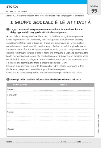 Imparo a... ricavare informazioni da un testo sulla società egizia e organizzarle in una tabella