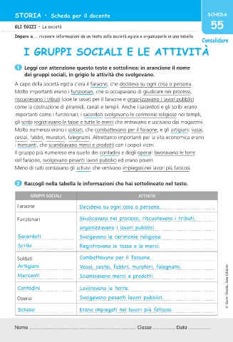 Imparo a... ricavare informazioni da un testo sulla società egizia e organizzarle in una tabella