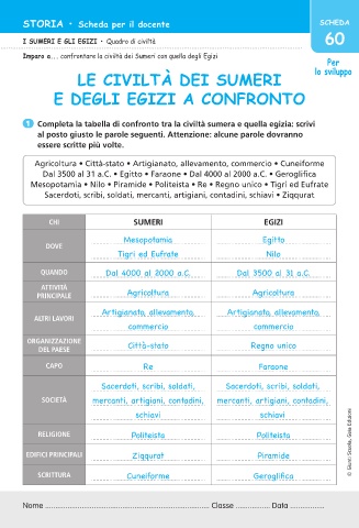 1 Completa la tabella di confronto tra la civiltà sumera e quella egizia: scrivi