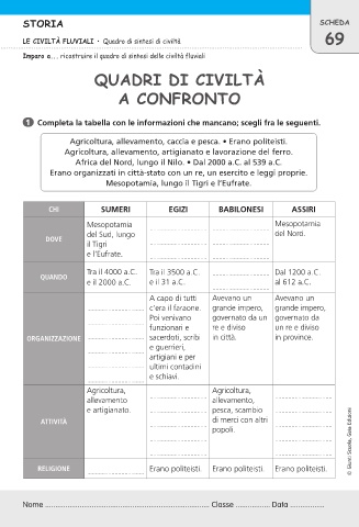 LE CIVILTÀ FLUVIALI • Quadro di sintesi di civiltà
