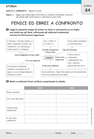 2 Metti a confronto Fenici ed Ebrei completando la tabella.