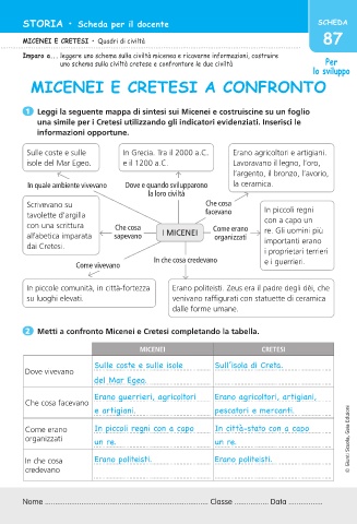 2 Metti a confronto Micenei e Cretesi completando la tabella.