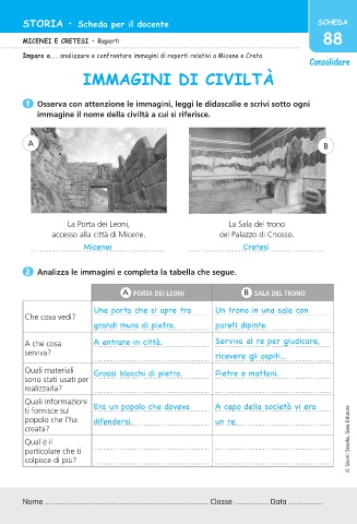 Imparo a... analizzare e confrontare immagini di reperti relativi a Micene e Creta