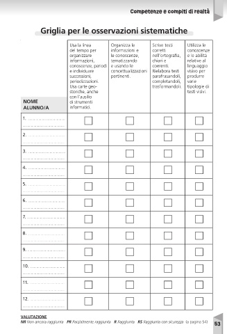NR Non ancora raggiunta PR Parzialmente raggiunta R Raggiunta RS Raggiunta con sicurezza (a pagina 54) 53