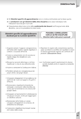 Gli Obiettivi specifici di apprendimento sono la relativa declinazione per la classe quarta.