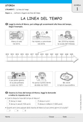 1 Leggi la storia di Marco, poi collega gli avvenimenti alla linea del tempo.