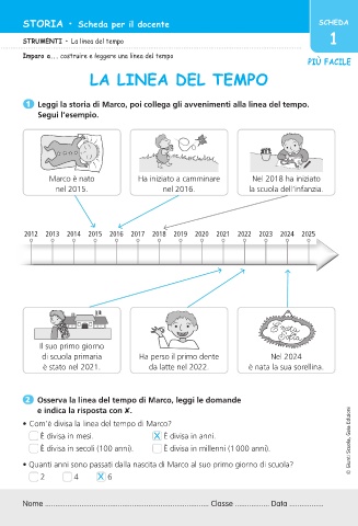 1 Leggi la storia di Marco, poi collega gli avvenimenti alla linea del tempo.