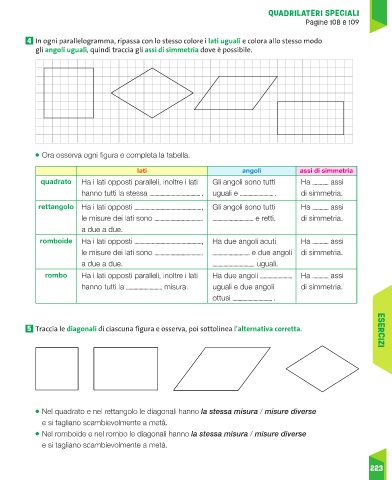 5 Traccia le diagonali di ciascuna figura e osserva, poi sottolinea l’alternativa corretta. ESERCIZI