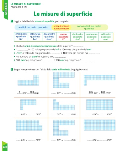 1 Leggi la tabella delle misure di superficie, poi completa.