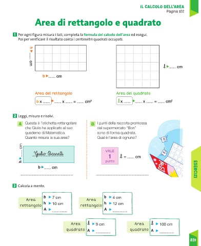 1 Per ogni figura misura i lati, completa la formula del calcolo dell’area ed esegui.