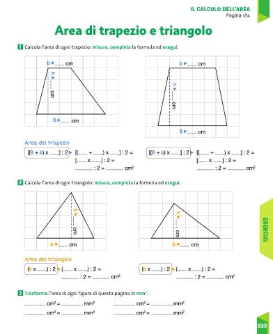 1 Calcola l’area di ogni trapezio: misura, completa la formula ed esegui.