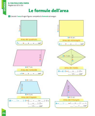 1 Calcola l’area di ogni figura: completa la formula ed esegui.