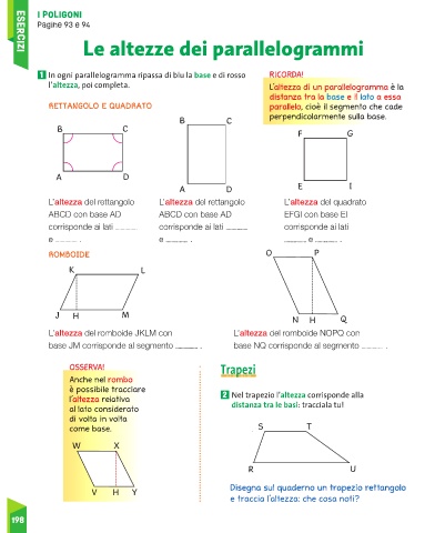 1 In ogni parallelogramma ripassa di blu la base e di rosso RICORDA! !