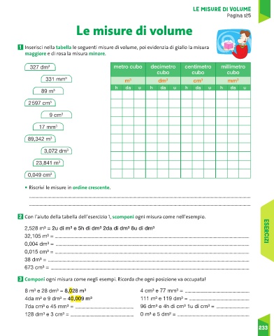 1 Inserisci nella tabella le seguenti misure di volume, poi evidenzia di giallo la misura
