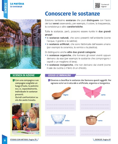 Con una compagna o un                   Osserva e classifica le sostanze che formano questi oggetti. Per