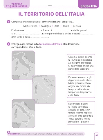 OBIETTIVO Conoscere le informazioni fondamentali sul territorio italiano e sulla sua formazione.