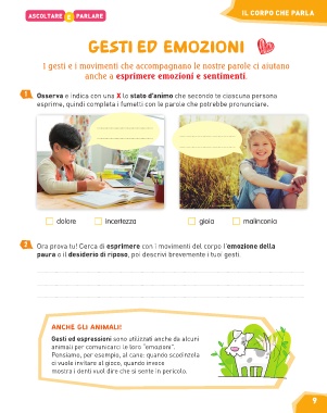 esprime, quindi completa i fumetti con le parole che potrebbe pronunciare.