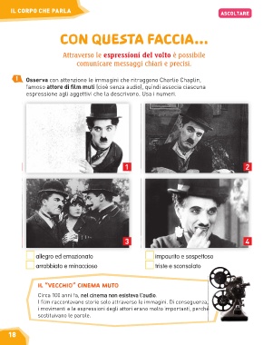 1 Osserva con attenzione le immagini che ritraggono Charlie Chaplin,