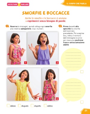 1 Osserva le immagini, quindi collega ogni smorfia 2 Prova davanti allo