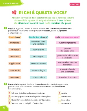 1 Leggi gli aggettivi, che si riferiscono a diversi toni che la voce può assumere,