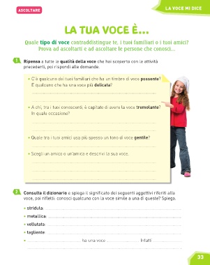 • Scegli un amico o un’amica e descrivi la sua voce.