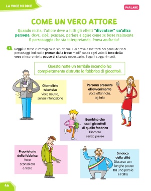 personaggi indicati e pronuncia la frase modificando ogni volta il tono della