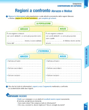 e Molise ( pagine 51 e 53 del Sussidiario ), poi completa gli schemi.