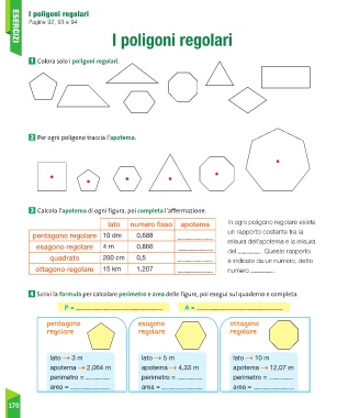 3 Calcola l’apotema di ogni figura, poi completa l’affermazione.