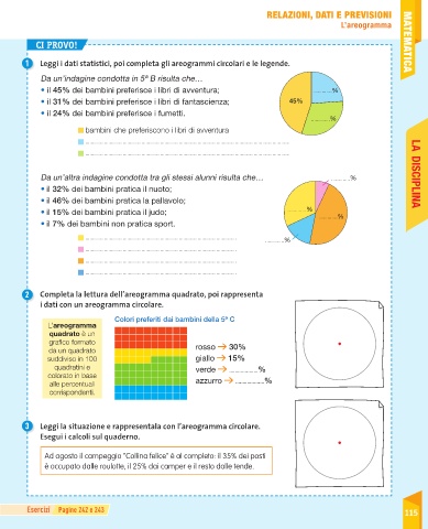 1 Leggi i dati statistici, poi completa gli areogrammi circolari e le legende.